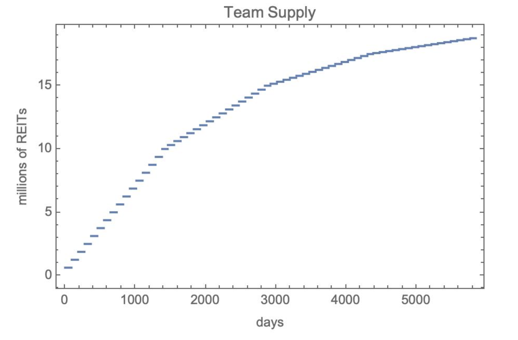 As an example, the next graph and table show the available REIT token supply allocated to the team as a function of time.